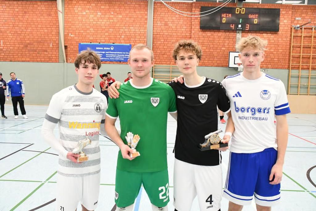 Hinzu kam die Auszeichnung von Wes Martron (FC Schüttorf) als bester Spieler des Turniers; Eliah Preiß (SuS Stadtlohn) teilte sich mit Jan die Torschützenkrone.